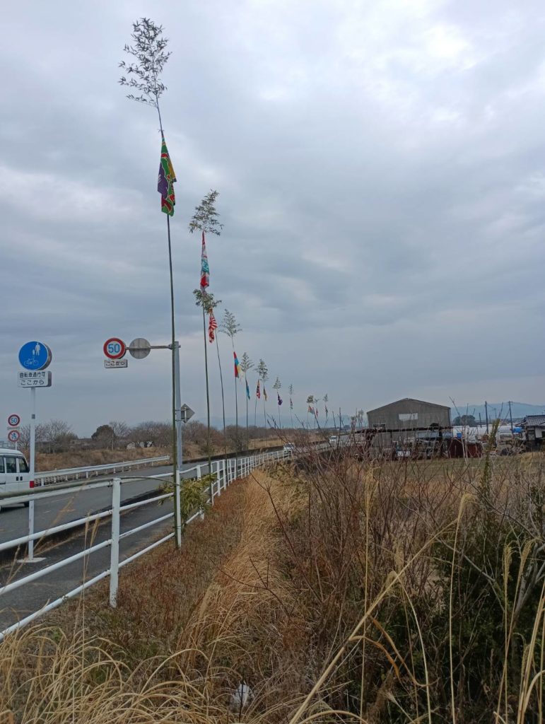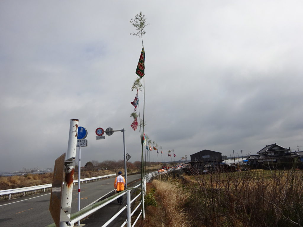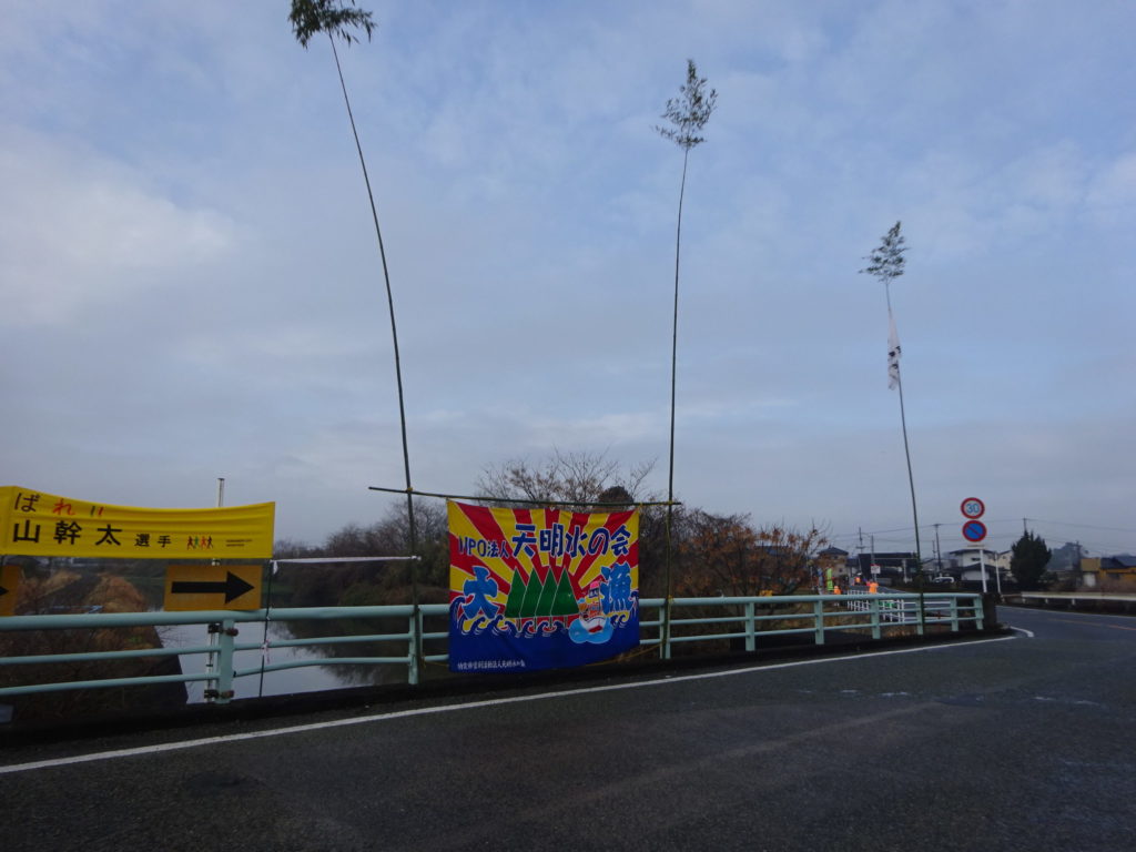 2月15日日曜日の熊本城マラソンランナーの応援のために9メートルの高さの竹を30数本用意して沿道に大漁旗と共に設置してきました。
