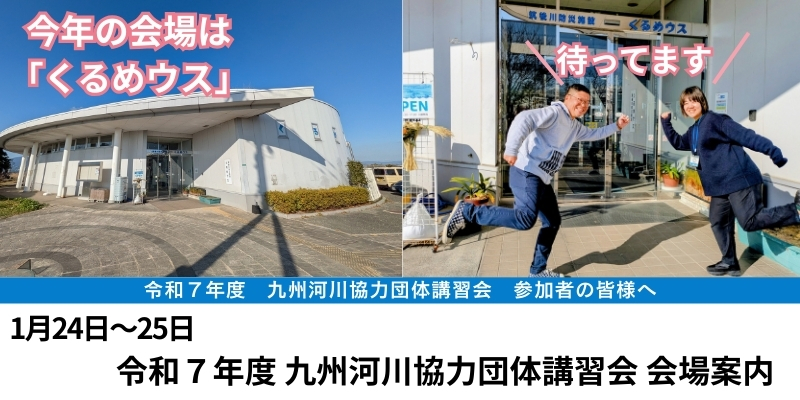 さて、早速ではございますが、1月24日~25日に「九州河川協力団体講習会」が開催されます。出席者の皆様に向けて、会場等のご案内をさせていただきます。